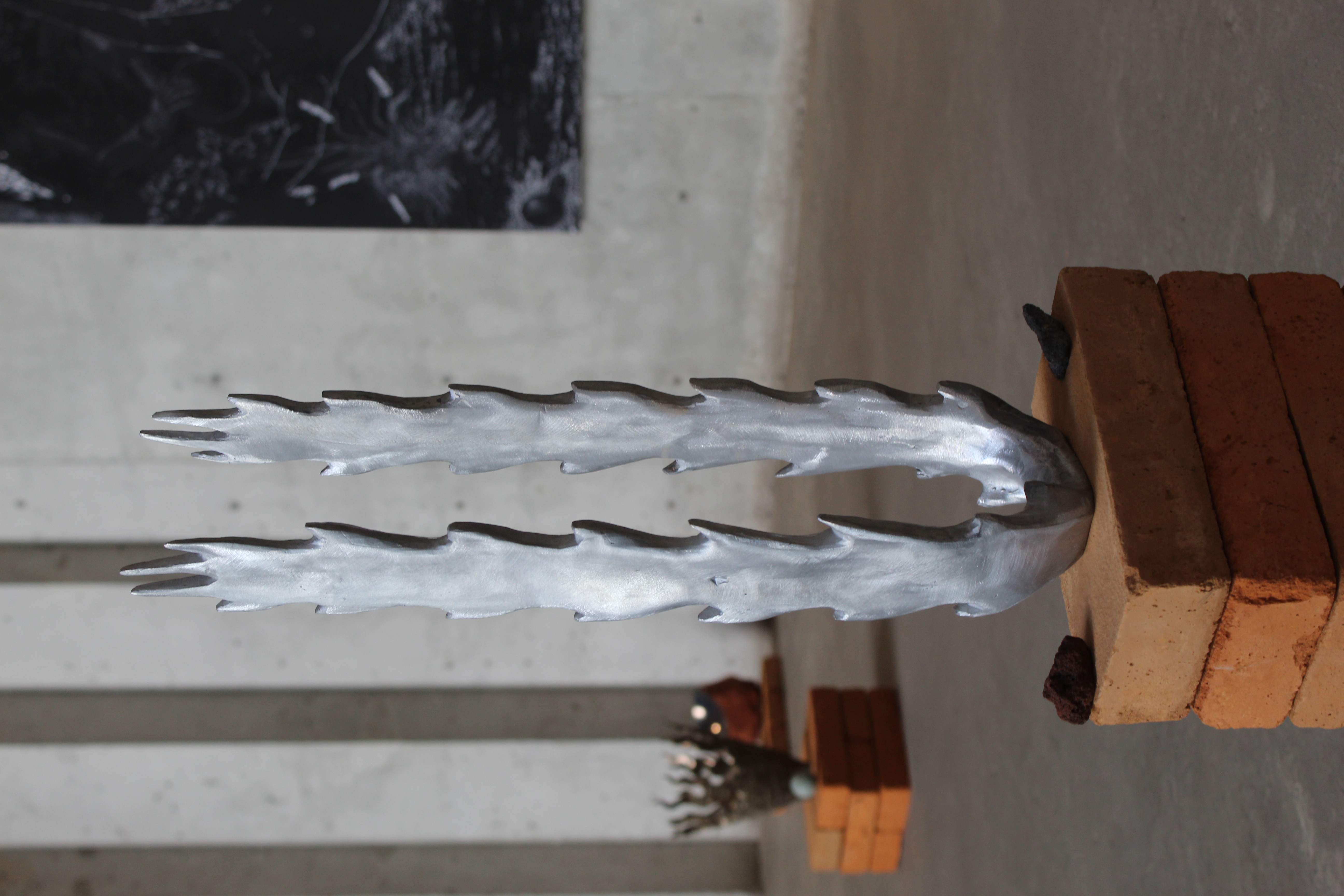 Though characterized by quite a lot of environmental and figurative turmoil (exploding volcanoes, fragmentary bodies), the subject of Suárez’s prints is not apocalypse but sublimity (awesomeness) in the Romantic sense. They are also a form of history painting, but independent of narrative. Suárez describes their densely populated suggestiveness as an empty vessel that can be filled by anyone and then poured into other understandings. Which makes his cosmology a working allegory for the many human traditions, both scientific and pseudoscientific, of seeking to push our consciousness beyond ourselves. This yearning for cosmic epiphany appears in many of his prints in the timeless visual metaphor of sparks from an earthly fire spiraling up to join the stars in the night sky.